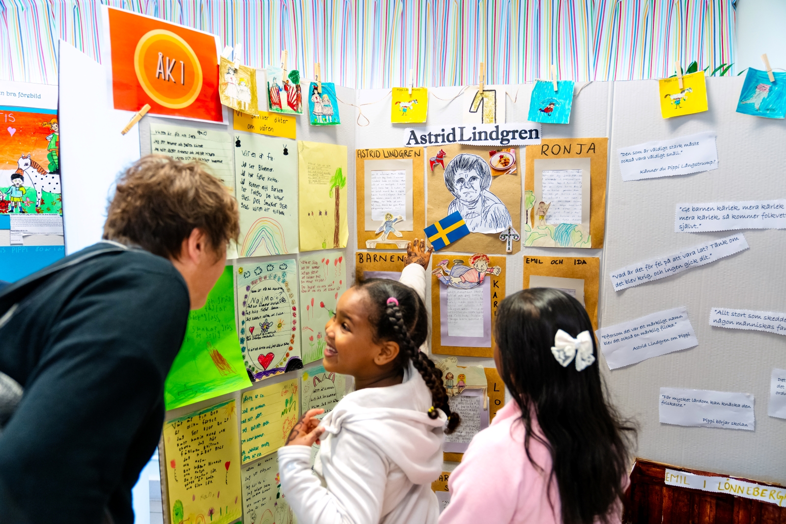 At Hjulsta School for grades K–9 in Stockholm, they love books and reading. Each year, pupils study the Astrid Lindgren Memorial Award and create works inspired by the books and themes of the laureates. At the end of the school year, their images, texts and other art are exhibited for parents and siblings at a festive gala.