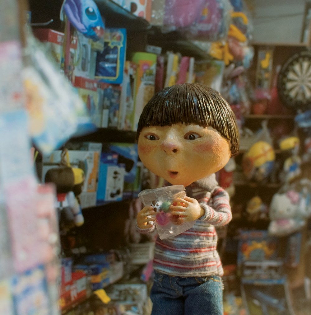 Baek Heena has said that she finds inspiration in the craft process itself, and a creative challenge in the picture book format and the constraints of two-dimensional image-making. Her dedication to the manual process, the sculpting and the lighting, and her attention to the tiniest detail, are not only impressive but also crucial to the finished result. This might mean making scores of copies of a single character with only miniscule variations in posture or facial expression, hand-sewing tiny articles of clothing, manufacturing miniature shoes, or hand-printing wallpapers that we will never more than glimpse on the wall of a room in the background of a story.