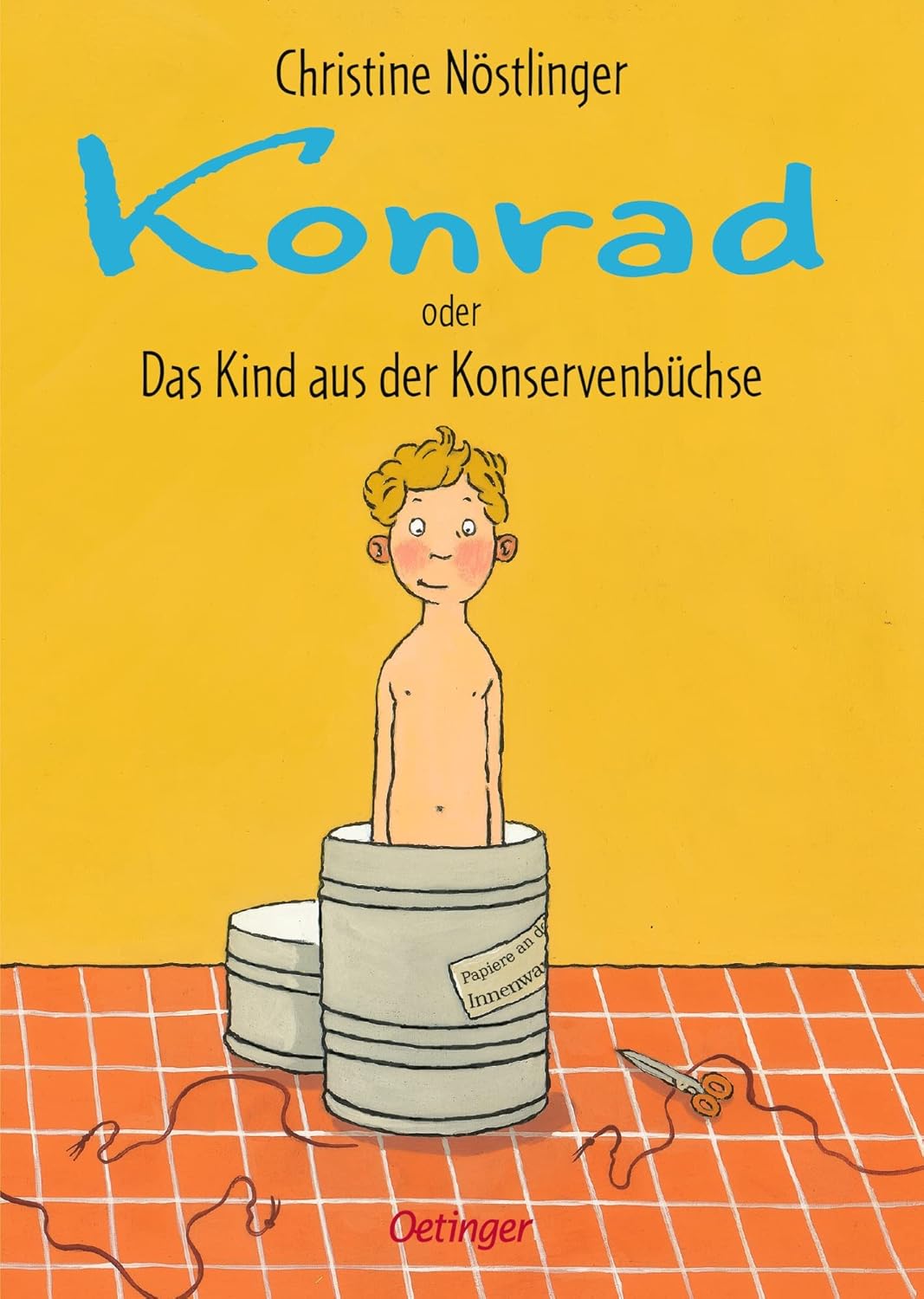 The antiauthoritarian Wir pfeifen auf den Gurkenkönig (The Cucumber King), 1972, as well as the ingenious Der Zwerg im Kopf, 1989, also belong to the first category. In Der Zwerg im Kopf, a Nils Holgersson type pixie, with a pointed woolen hat, suddenly takes up residence in a schoolgirl's head and becomes her not entirely reliable speaking partner. Nöstlinger's masterpiece is perhaps Konrad oder Das Kind aus der Konservenbüchse (Conrad: The factory Made Boy), 1975, an hilarious story about a bohemian woman who gets a parcel containing an exemplary seven-year-old boy. Instead of simply poking fun at child-rearing, the uniformity of industrialism is also ridiculed. Das Leben der Tomanis, 1976, illustrated by Helme Heine, is another amusing book. Well-behaved children are not the only ones who start singing, jumping and somersaulting like wild tomanis. Their parents do as well, much to the horror of the neighbours.