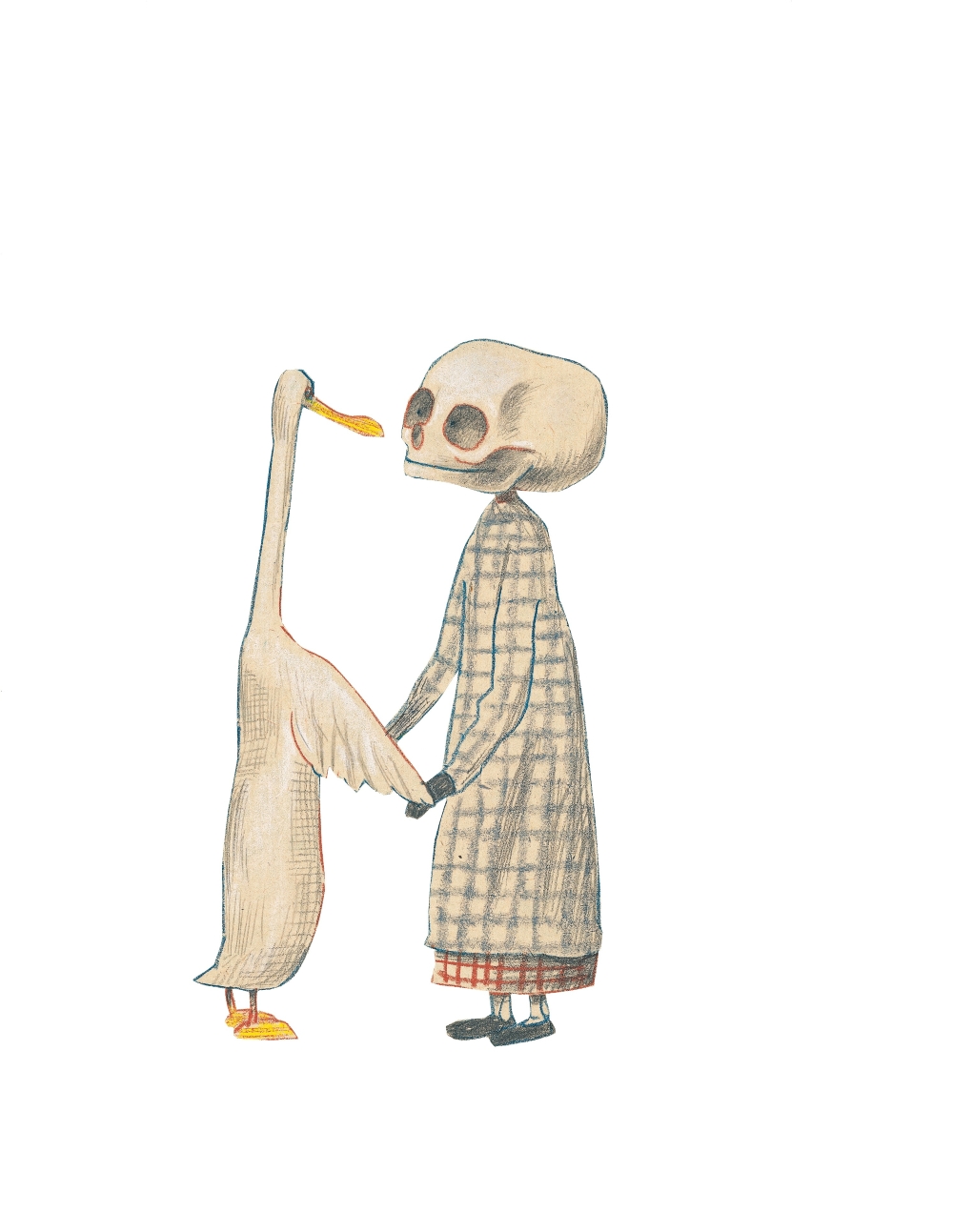 Ente, Tod und Tulpe har hyllats som en modern klassiker. Med sitt enkla och renodlade innehåll blir den en meditation över livets villkor och dödens närvaro och oundviklighet. Berättelsen är en nutida version av det medeltida dödsdansmotivet, där människor i alla åldrar och av alla stånd förr eller senare måste möta döden. Motivet undersöks här varsamt och kärleksfullt och Erlbruch lyckas gestalta en ömhet och närhet i relationen mellan anden och döden som kan lätta upp det mörker som ofta vilar kring dessa frågor.